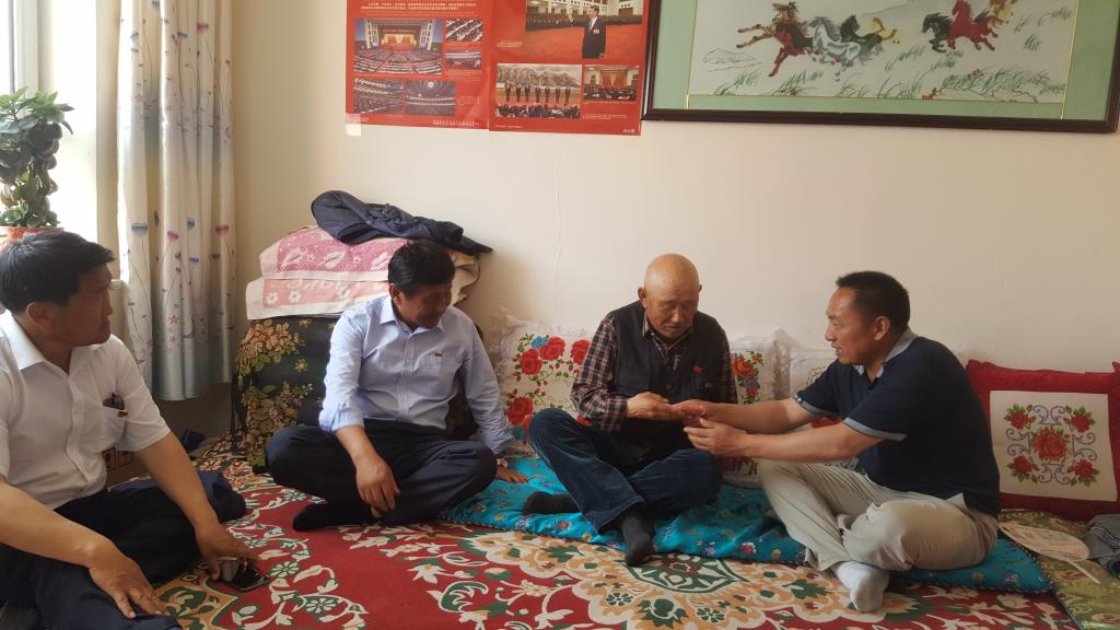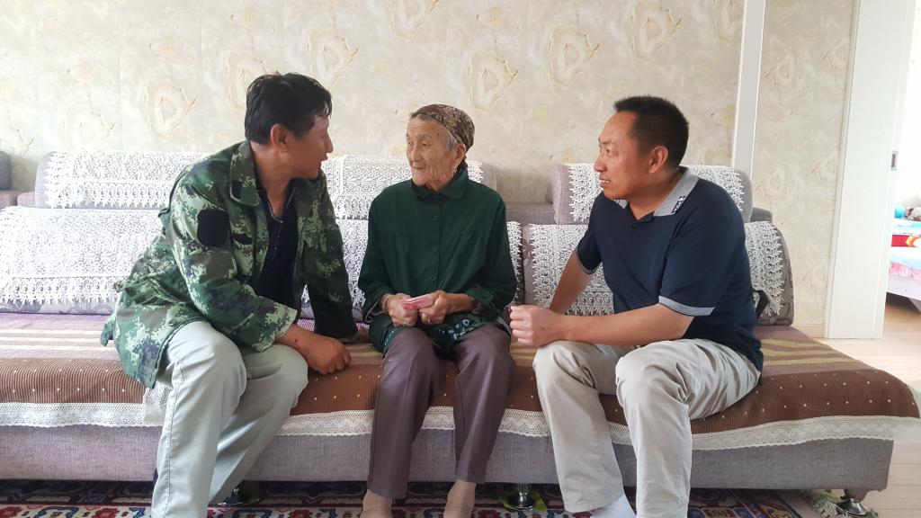 七一前夕,州商务局驻温泉县扎勒木特乡查干赛队工作队,与乡包联领导、队党支部一班人,对本队两位老党员进行了走访慰问。76岁的贡其克老人激动地说,现在党的政策好呀,这两年,我们队里盖了房、修了路、安了路灯,今年还给我们把山泉水引来,鼓励大家发展庭院经济,还组织大家外出参观,引导大家小畜换大畜,大畜换良种,我们查干赛人的日子是越来越好了,这都要感谢工作队,感谢党。85岁高龄的老党员英玛感慨地说,我的眼睛不好,平时生活起居都要人照顾,在队党支部的关心下,我的生活也是越来越好,感谢组织的关心和关怀。