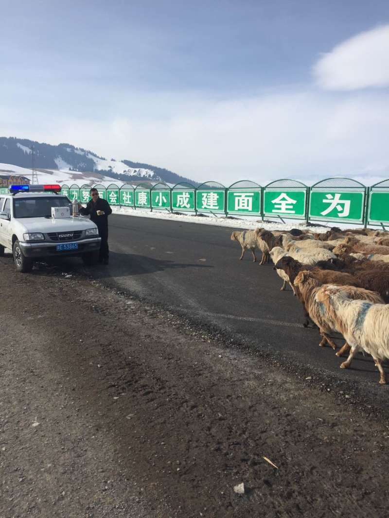 执法巡逻工作同时转场的伊犁牧民提供热水