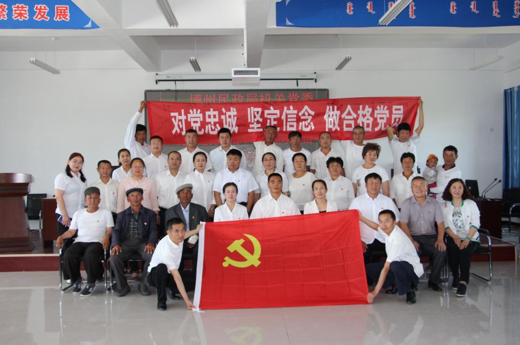 主题党日活动中,通过表彰先进、开展“学习十九大,解读新党章”知识竞答、慰问贫困党员和党员作用发挥好党员等活动,教育、引导全体党员爱党、护党,增强学习贯彻习近平新时代中国特色社会主义思想,坚定理想信念,牢固树立总目标意识,不忘初心、牢记使命,发挥好党员先锋模范作用的决心和信心。州民政局党组书记、机关党委书记、枣格图村第一书记、驻村工作队队长王彬同志结合自身学习实际,就“如何对党忠诚、做一名合格共产党员”谈体会、谈感受,给全体党员上了一堂专题党课。