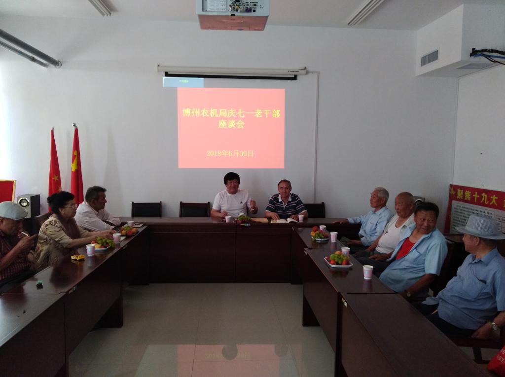 2018年6月30日,州农机局组织退休老党员、老干部开展主题党日活动。州农机局党组书记何新安同志参加了会议并讲了话,他对老党员和老干部汇报当前农机局的发展状况及今后的工作重点,向座谈的老干部表示节日问候。
