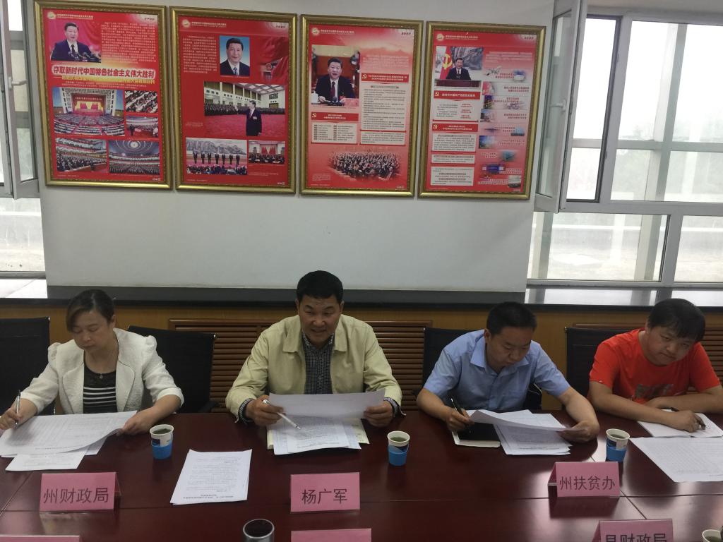 杨主任一行听取了县财政局2017-2018年财政专项扶贫资金拨付进度情况,县民宗委2017-2018年少数民族发展资金项目实施情况,县扶贫办2017-2018年财政专项扶贫资金项目实施情况。并与参会人员进行了交流沟通,详细了解项目实施和资金拨付过程中存在的困难和问题。